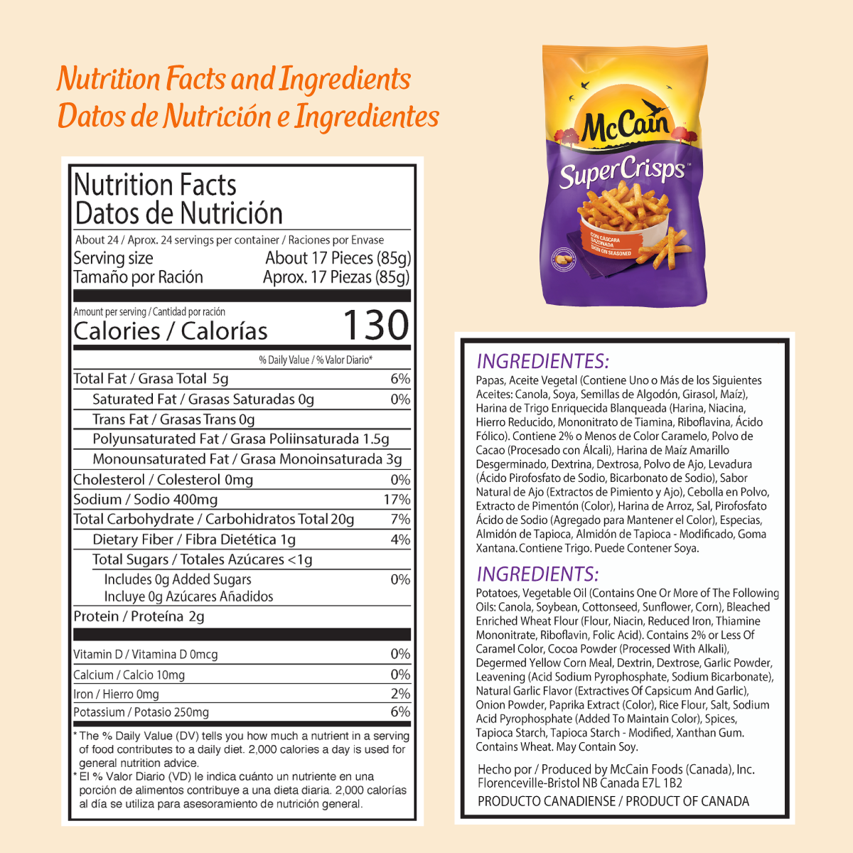 Straight cut potatoes covered in a tasty coating of paprika and spices to offer a super crispy texture and a unique flavor.