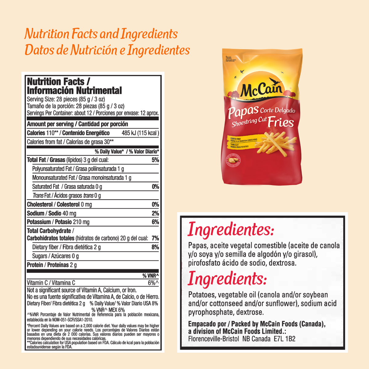 Traditional thin cut potatoes (shoestring), to give a different touch to your menu.
