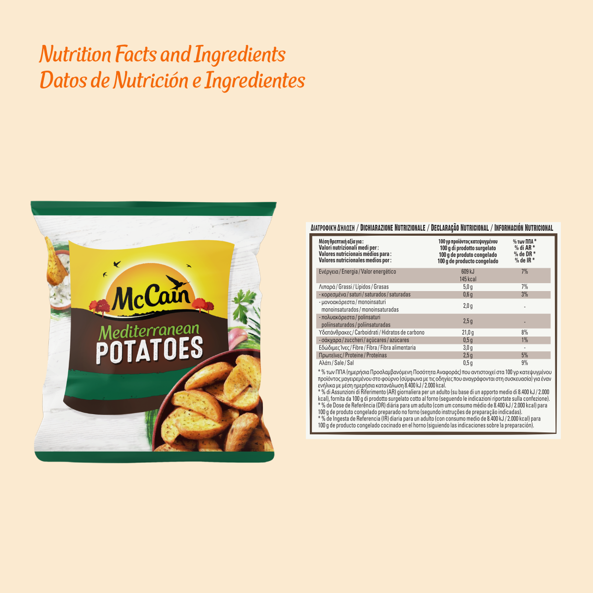 Potato wedges with skin and crispy topping seasoned with garlic and herbs, bringing great flavor to your meals