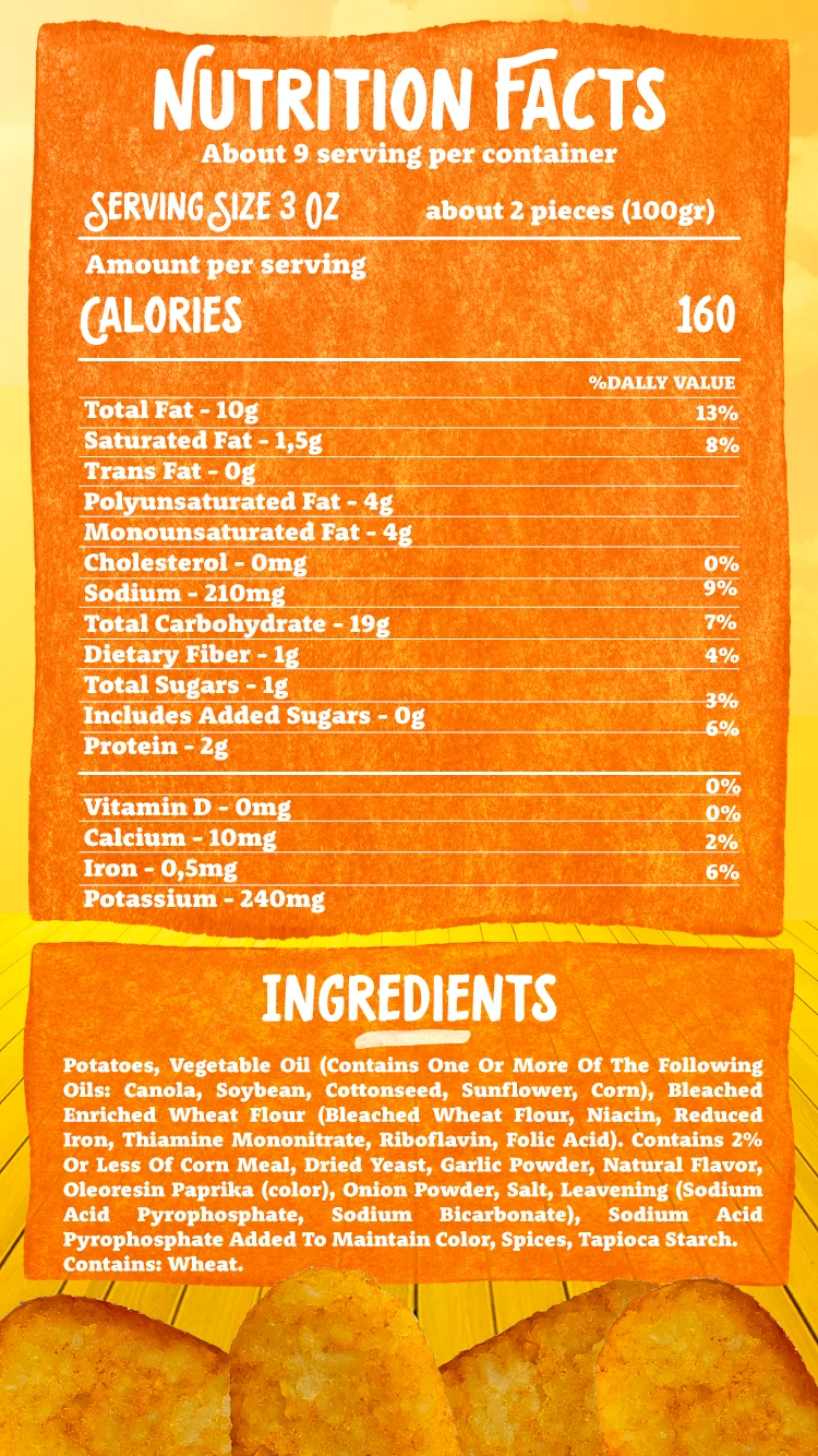 Grated Potato Cakes. Made with 100% potato. No artificial flavorings.