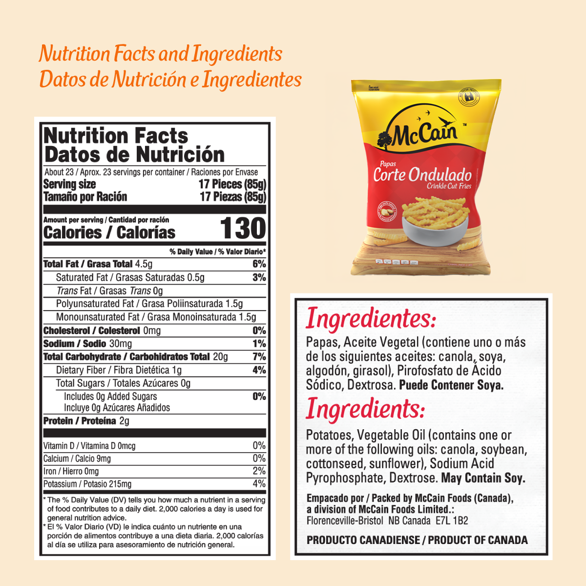 Papas corte ondulado (crinkle cut), ideales para darle un toque diferente a tu menú.
